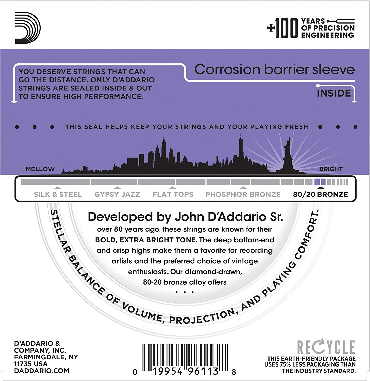 - Dây đàn D'addario EJ13 được sản xuất tại Mỹ theo thông số kĩ thuật chính xác tuyệt vời.