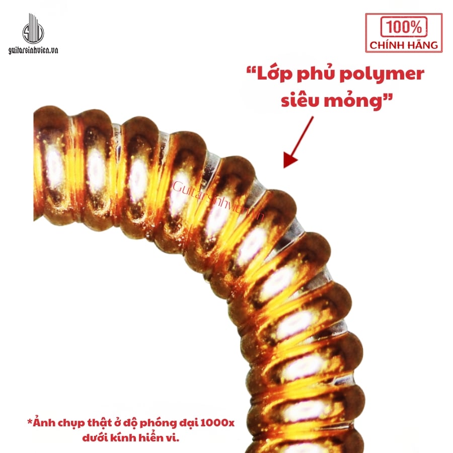 - Dây 3.4.5.6 được phủ lớp Polymer siêu mỏng: Công nghệ lắng đọng chân không chính xác và xử lý nhiệt siêu mỏng, giúp tăng cường khả năng chống rỉ, cho độ bền cao và nhẹ nhàng khi lướt trên dây đàn.