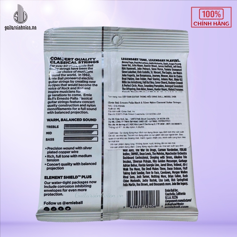 Dây Đàn Guitar Classic Ernie Ball 2406 Chính Hãng Có Tem Nhập Khẩu Chính Ngạch.
